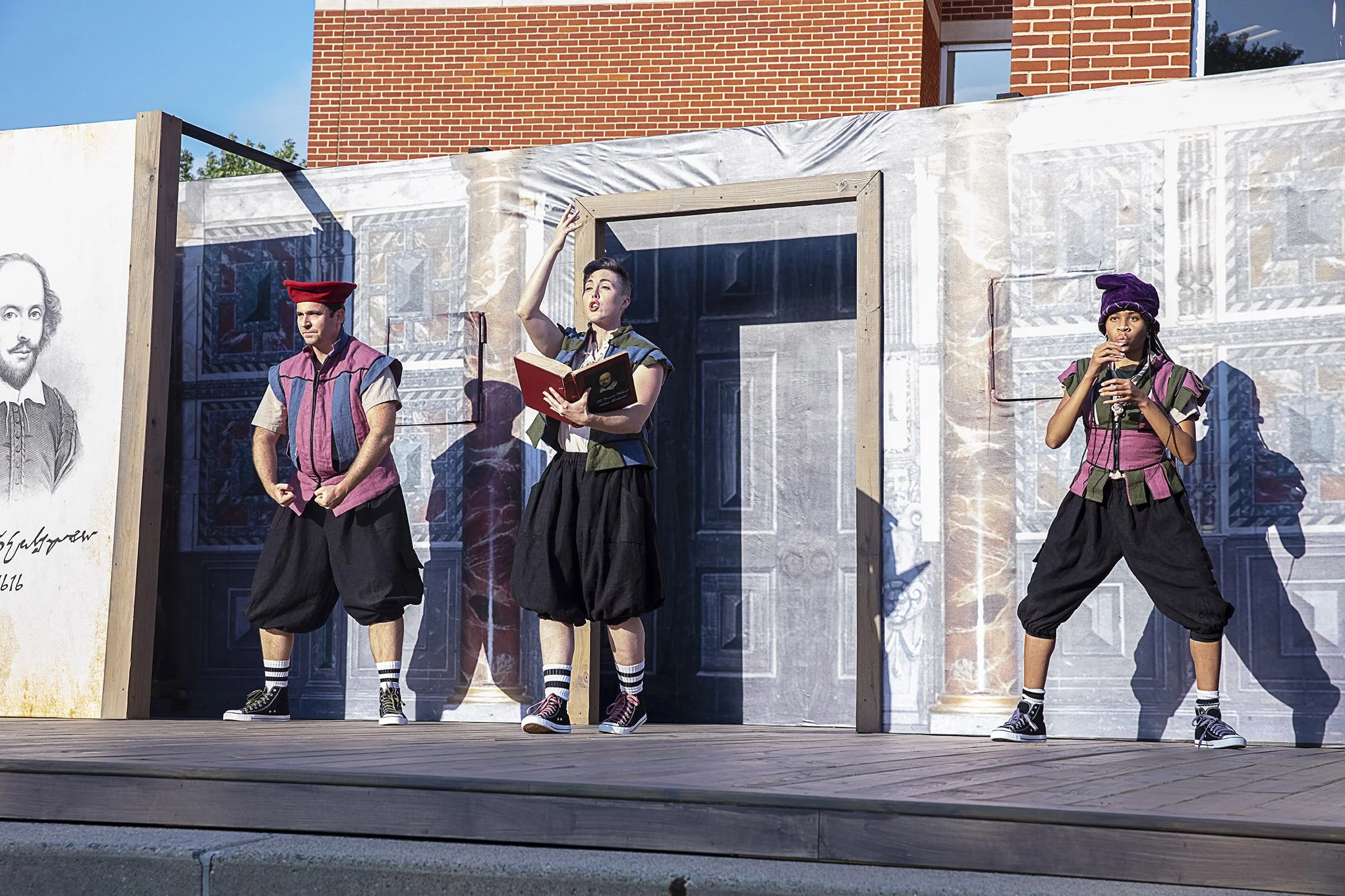 I’ve begun carrying a notebook around so I can reference my notes when writing performance reviews. I brought my notebook to The Pennsylvania Shakespeare Festival’s The Complete Works of William Shakespeare (abridged) [revised] [again], but it never made it out of my bag. I was captivated from the first second to the last as this hilarious production guided audience members through the Bard’s works. The play’s description states “if you like Shakespeare, you’ll like this show. If you hate Shakespeare, you’ll LOVE this show.” As someone who loves Shakespeare, I still loved this show!